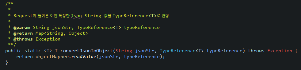 * 어떤 특정한 Json String 값을 TypeReference<T>로 번형